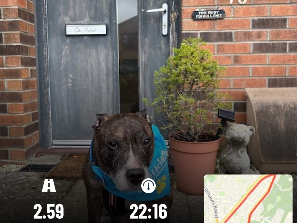 2.86 miles while Kobi’s Minion was at football training.